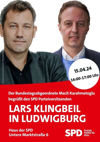 Lars Klingbeil, MdB und Parteivorsitzender, und Macit Karaahmetoglu, MdB, auch in Ludwigsburg im Haus der SPD von 16:00 - 17:00 Uhr!