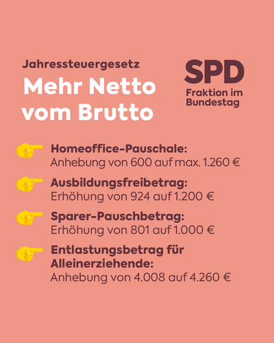 Im Jahressteuergesetz stecken für viele Entlastungen drin, die für mehr Netto vom Brutto sorgen.