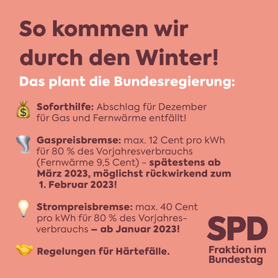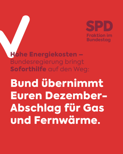 Wir lassen niemanden alleine. Mit der Dezember-Hilfe machen wir einen wichtigen Schritt, bevor im kommenden Jahr die Strom- und Gaspreisbremsen an den Start gehen. Deutschland packt das!